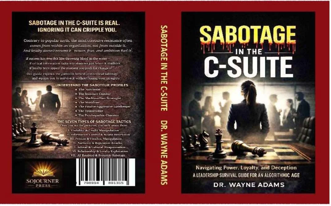 Sabotage in the C-Suite: How to Spot It, Defend Yourself, and Win in the Age of AI is a strategic leadership guide for current and future senior executives, high-potential leaders, consultants, business professors, and MBA’s who are now or may be navigating the hidden realities of power, politics, and perception at the highest levels of modern organizations in the future.